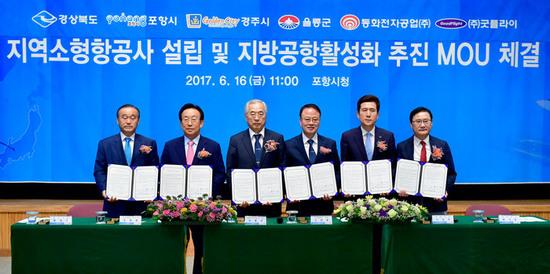경상북도는 16일 포항시청 대회의실에서 6개 관계기관과 ‘지역소형항공사 설립 및 지방공항 활성화’를 위한 양해각서(MOU)를 체결했다.소형항공사는 150석 이상의 대형 항공에 비해 적은 50인승 이하의 비행 기종을 운영하는 항공사로, 제주노선과 김포 노선에 투입될 예정이다.