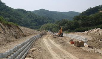 양남 건대소하천은 기록적인 폭우를 비롯한 기상변화에 대비해 강우빈도를 30년에서 50년으로 상향조정하고 하천 범람 및 시설물 개량복구을 위해 사업비 20억원을 투입해 하류부부터 식생옹벽블럭과 전석쌓기 작업을 한창 진행중에 있다.