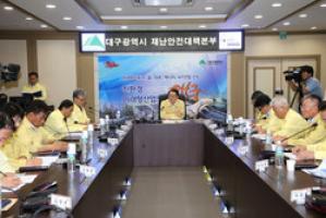 | ▲ 방역대책 추진상황을 점검하고 방역추진 현황보고를 받고 있는 김재수 농림축산식품부 장관 © 대구시 |